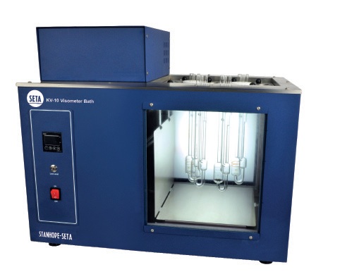 The KV-10 Viscometer Bath precisely maintains the temperature of viscometer tubes, which are used to measure the viscosity of liquid petroleum products.