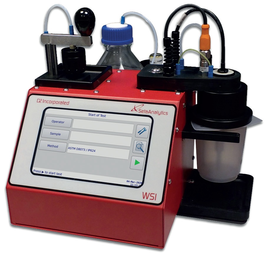 The Water Separation Instrument (WSI) is a fully automatic and compact bench top / portable instrument. The instrument measures how effectively a fuel sample releases entrained and emulsified water when pumped through a water coalescing filter. The measured water separation index clearly displays at the end of the test.