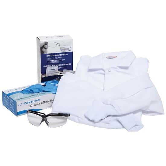 Coveralls, lab coats, aprons, shoe covers and etc.